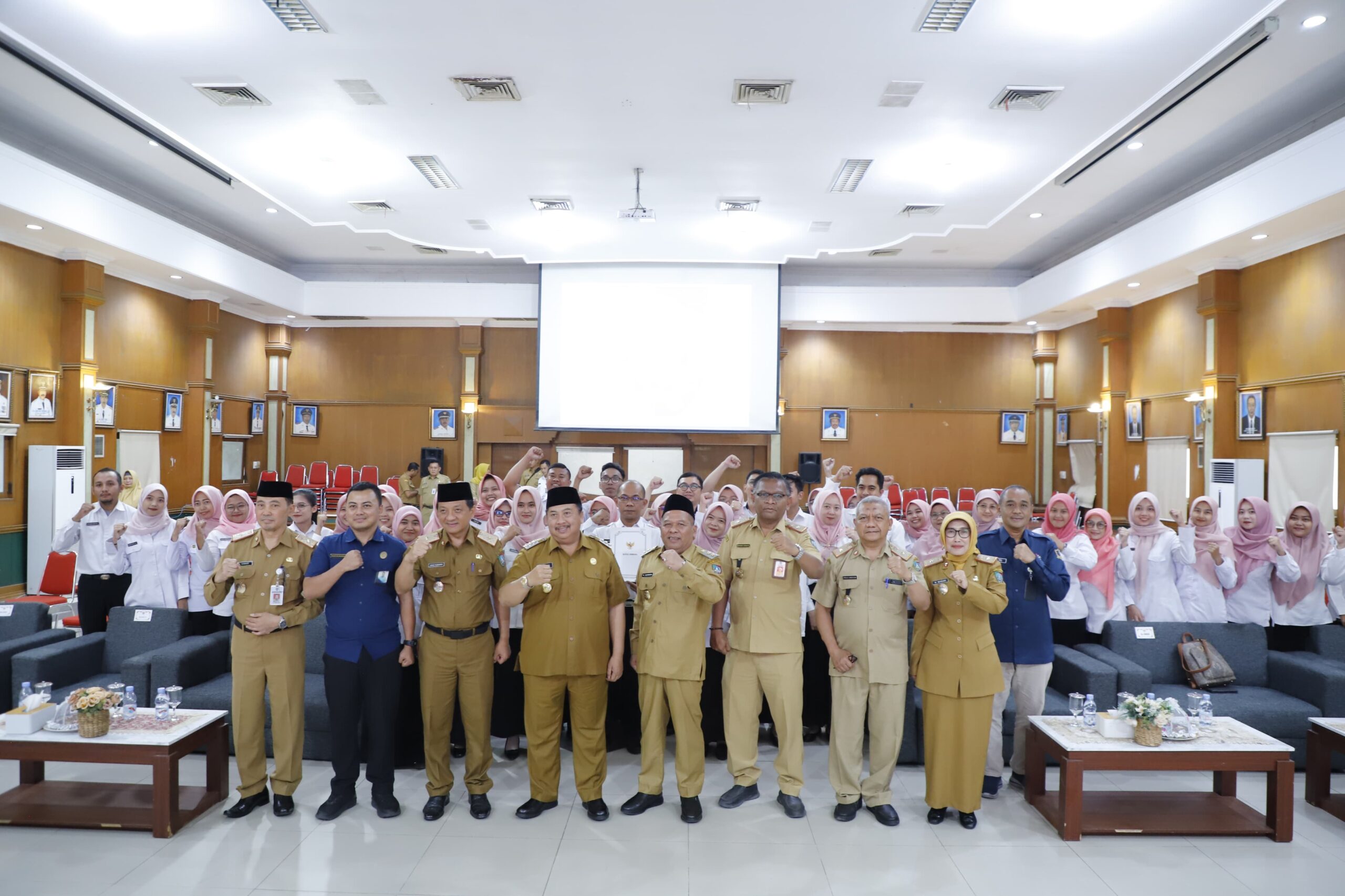 Acara penyerahan SK turut disaksikan oleh Wakil Bupati Jombang, Gus Salmanudin, S.Ag., M.Pd., Sekdakab Jombang Agus Purnomo dan para Kepala OPD terkait lingkup Pemkab Jombang.